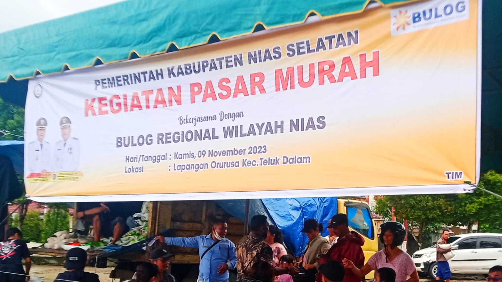 Dinas Perindustrian dan Perdagangan (Perindag) Nias Selatan menggelar “Kegiatan Pasar Murah” di Lapangan Orurusa di Jalan Pancasila Kelurahan Pasar Telukdalam, Kecamatan Telukdalam, Nias Selatan, Sumatera Utara, Kamis (09/11/2023) dari Pukul 09.00-16.00 WIB.