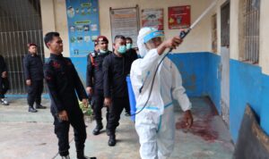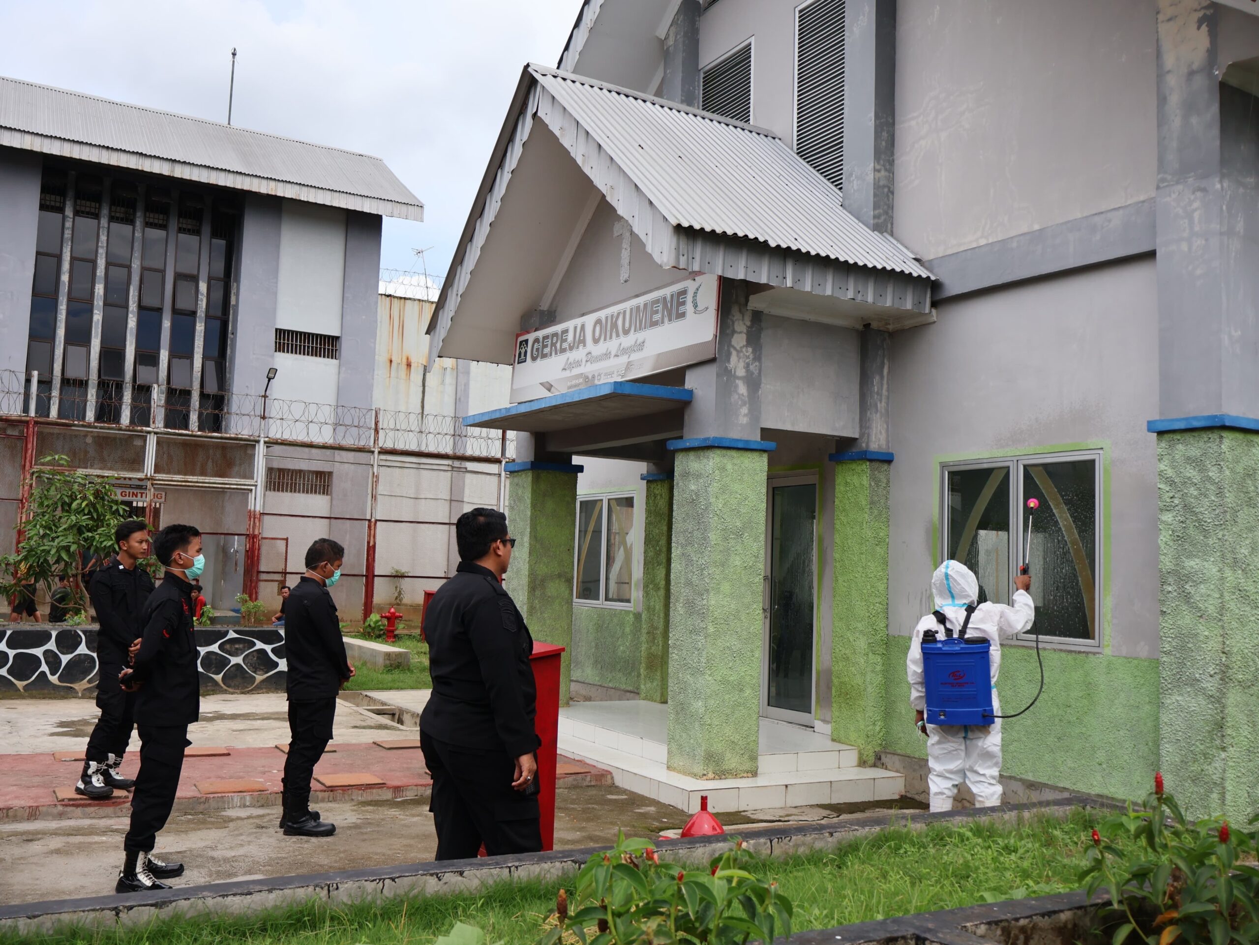 Dalam rangka menghambat atau membunuh mikroorganisme (misalnya pada bakteri, virus dan jamur) pada permukaan benda mati, seperti furniture, ruangan, lantai, dan lain-lain di kamar hunian, Lapas Pemuda Langkat Kanwil Kemenkumham Sumut melakukan penyemprotan keseluruh Lingkungan Blok Hunian.