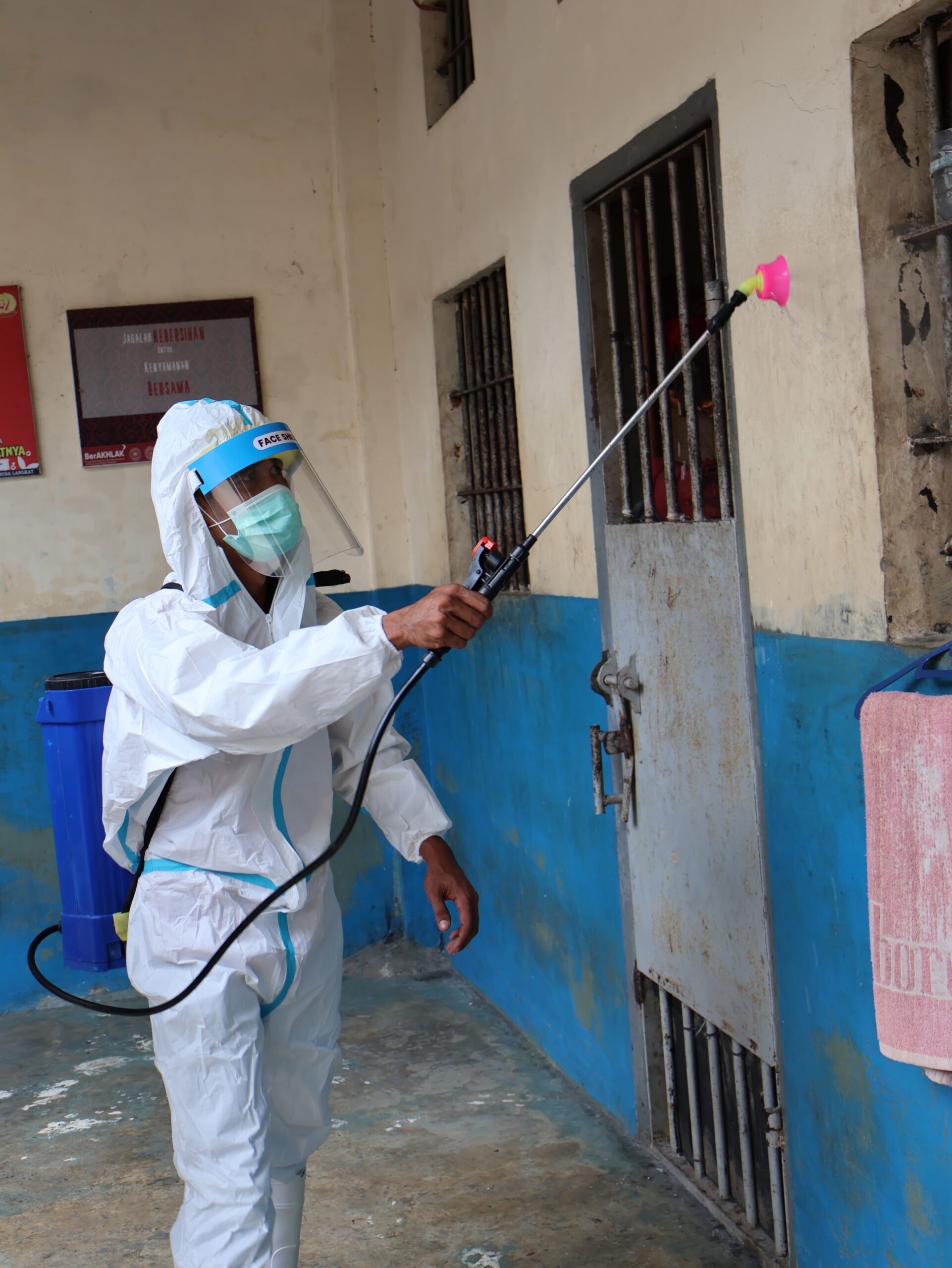 Kesehatan Warga Binaan merupakan tanggung jawab kita bersama, sehingga harus ada upaya untuk mewujudkan hal tersebut. Penyemprotan disinfektan ini merupakan salah satu upaya kita untuk memastikan mereka tetap dalam kondisi aman dan sehat,” ungkap Kalapas