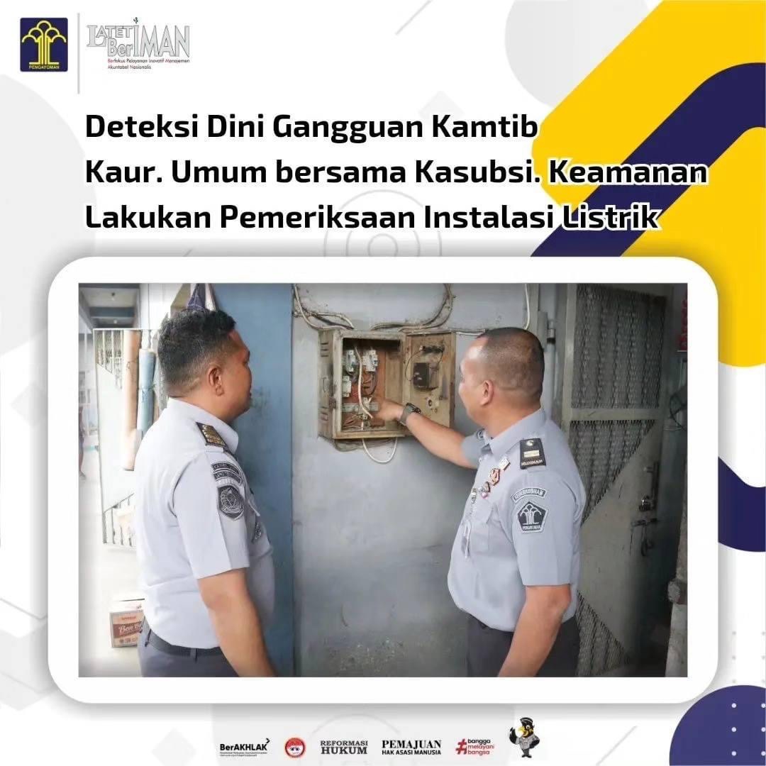 Turun langsung melakukan pengecekan instalasi listrik Kaur. Umum Josua Nainggolan bersama Kasubsi. Keamanan Rudy B. Purba, kegiatan tersebut dimulai dari pemeriksaan panel-panel listrik di ruang P2U dan dilanjutkan ke seluruh blok hunian warga binaan.