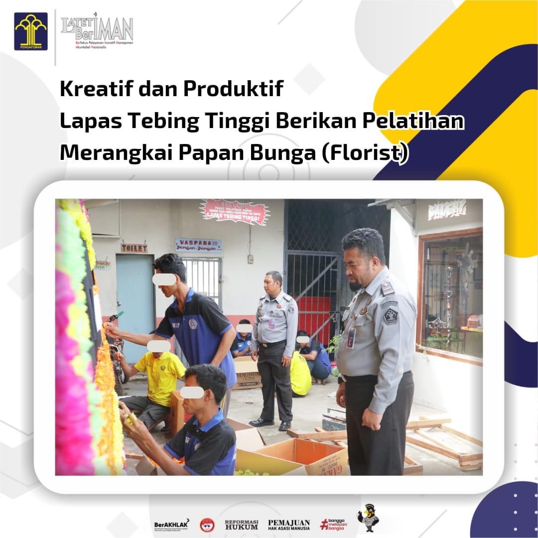 Sebagai bentuk pembinaan kepada para Warga Binaan Pemasyarakatan (WBP) dan juga menjadi bekal bagi warga binaan setelah bebas menjalani proses pidana, Lapas Tebing Tinggi selalu memberikan bermacam-macam bentuk pelatihan kerja maupun keterampilan sebagai wadah mengasah dan mengembangkan kreativitas para warga binaan, salah satunya adalah Merangkai Papan Bunga.