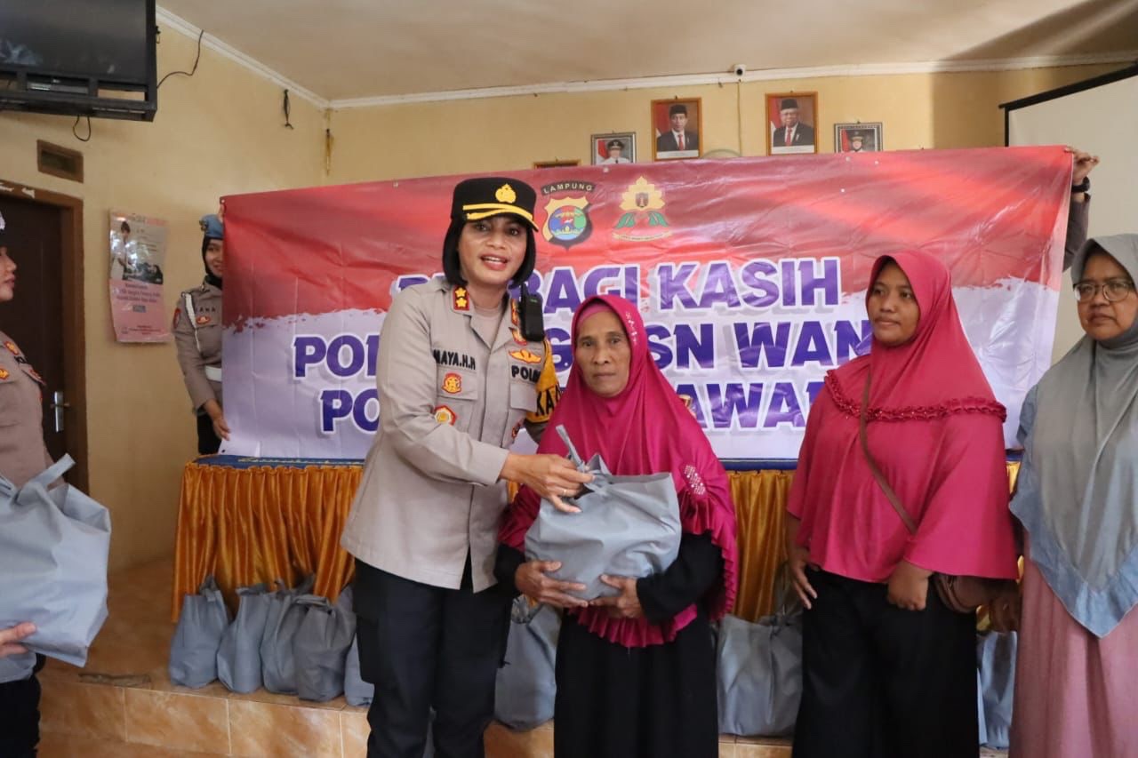 Dalam kegiatan ini di pimpin langsung oleh Kapolres Pesawaran AKBP Maya Heny Hitijahubessy, S.H., S.IK., M.M. bersama Polwan Polres Pesawaran, Asn Wanita Pesawaran Dan Pj. Ketua Cabang Bhayangkari Polres Pesawaran. Kali ini, pemberian bantuan sosial berupa sembako sebanyak 30 Paket di bagikan kepada warga masyarakat yang membutuhkan di balai Desa Way Harong Kec. Kedondong kab. Pesawaran.