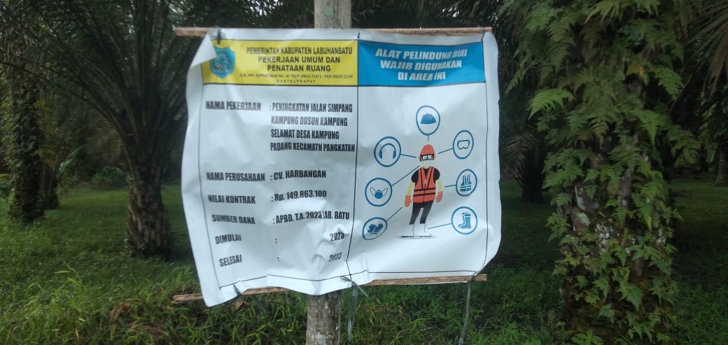 Suatu Proyek peningkatan jalan di Dusun Kampung Selamat, Desa Kampung Padang, Kecamatan Pangkatan, Kabupaten Labuhanbatu, Sumatera Utara, Suatu pekerjaan Pengaspalan asal jadi tidàk sesuai peraturan nya itulah yang dilaksanakan salah satu CV.HARBANGAN yang sangat di percayai, namun proyek tersebut bersumber dari dana APBD.