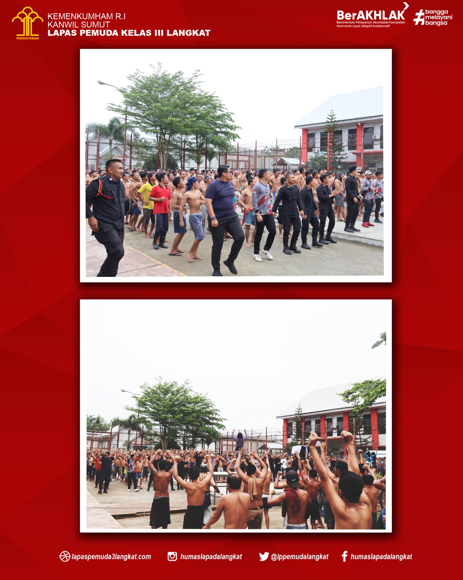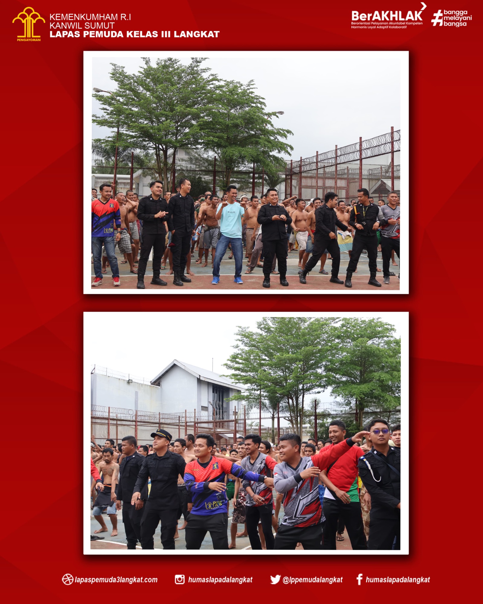 Kegiatan senam pagi ini merupakan salah satu dari bagian program pembinaan yang wajib melibatkan para Pejabat Struktural, Pegawai Lapas Pemuda Kelas III Langkat dan Warga Binaan Pemasyarakatan (WBP) yang di laksanakan di area lapangan dalam Lapas Pemuda Langkat.