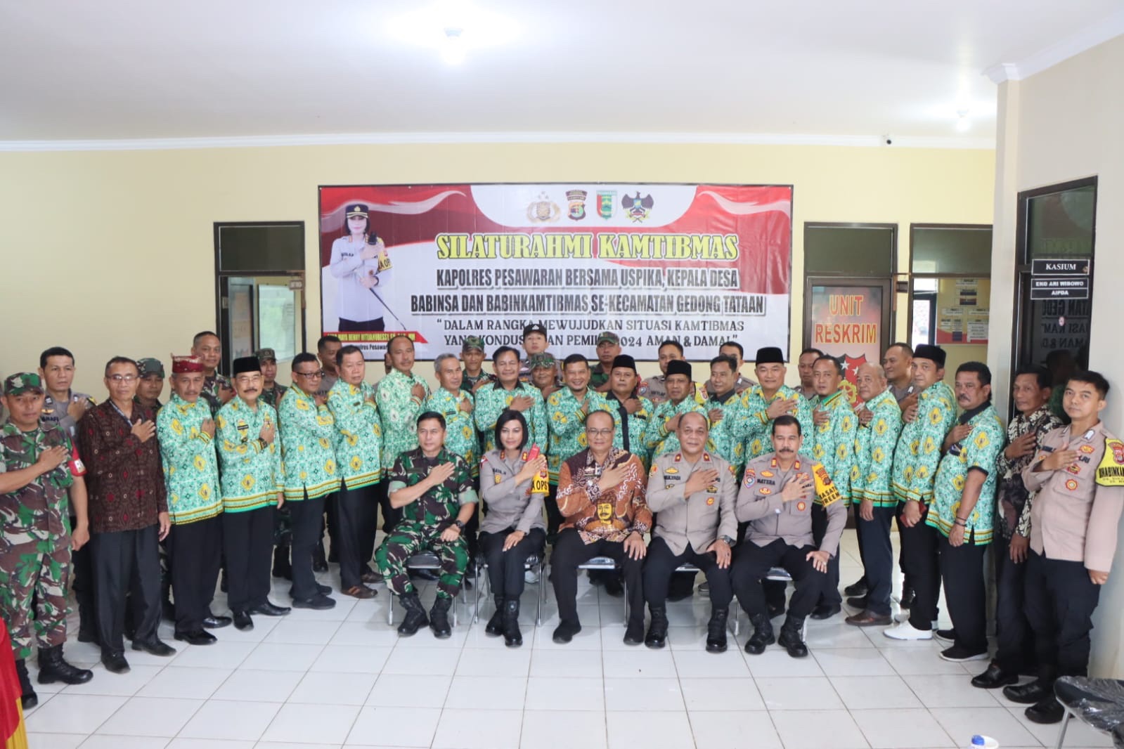 Dalam sambutannya, Kapolres Pesawaran AKBP Maya Henny Hitijahubessy, S.H., S.IK., M.M., menyampaikan pentingnya sinergitas Tiga (3) Pilar untuk memelihara Kamtibmas Menjelang Pemilu tahun 2024 di tingkat Desa Khususnya Wilayah Gedong tataan.