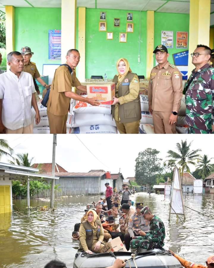 Bupati Musi Rawas Hj. Ratna Machmud Meninjau Langsung Lokasi Bencana Dan Warga Terdampak Banjir Di Desa Muara Megang Kecamatan Megang Sakti.(18/1/2024).