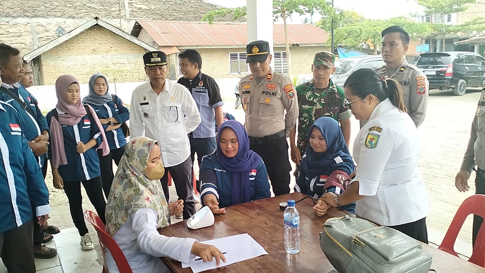Polsek Kotarih Polres Serdang Bedagai (Sergai), Sumut bersama-sama Camat Kotarih bersinergi dengan TNI-Polri melakukan pemeriksaan kesehatan (Rikkes) kepada petugas PPK jelang rapat Pleno, di Kantor PPK Kompleks Kantor Camat Kotarih Kabupaten Serdang Bedagai pada Minggu (18/02/2024).