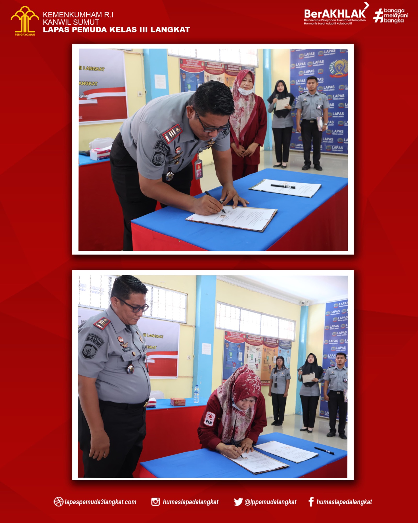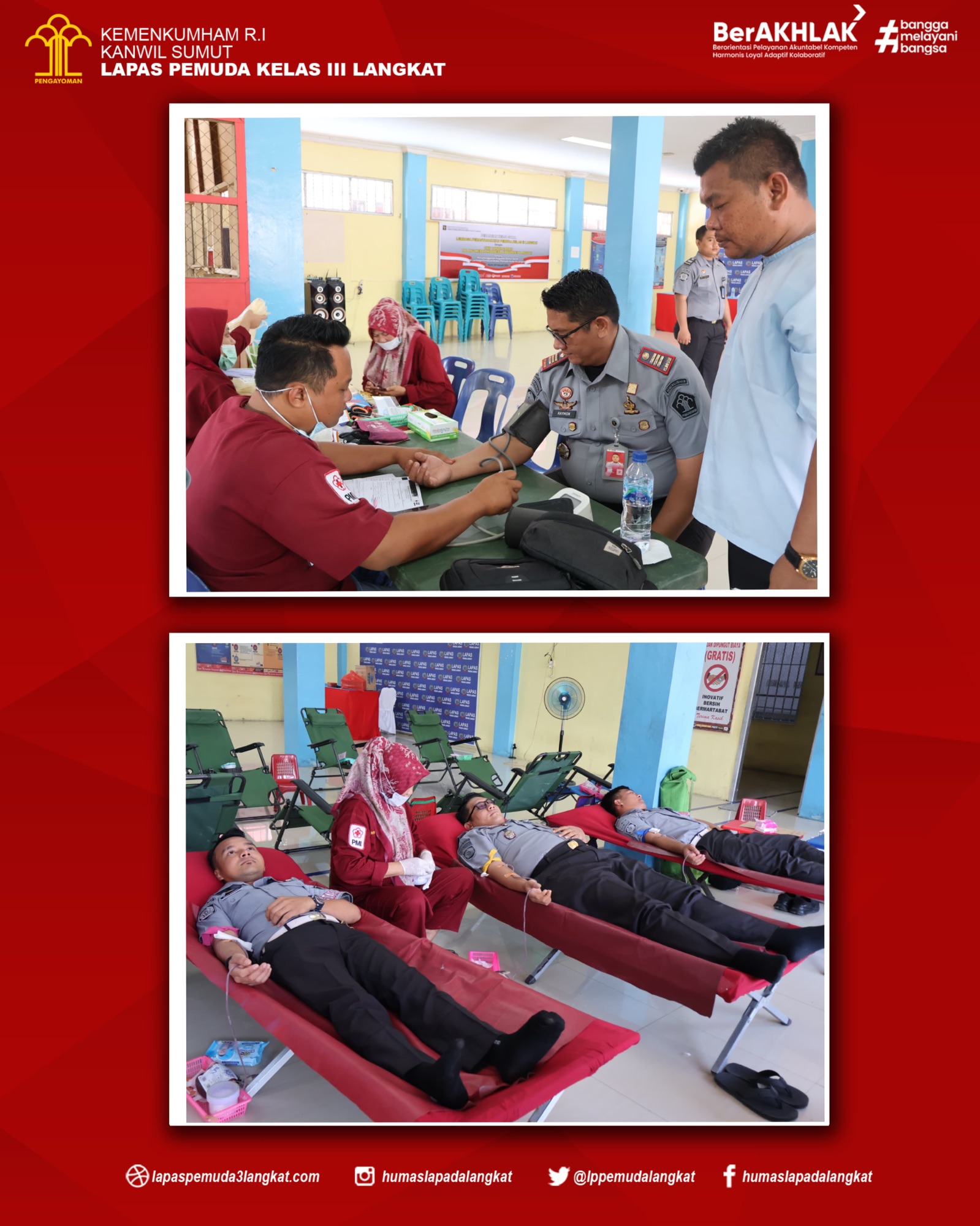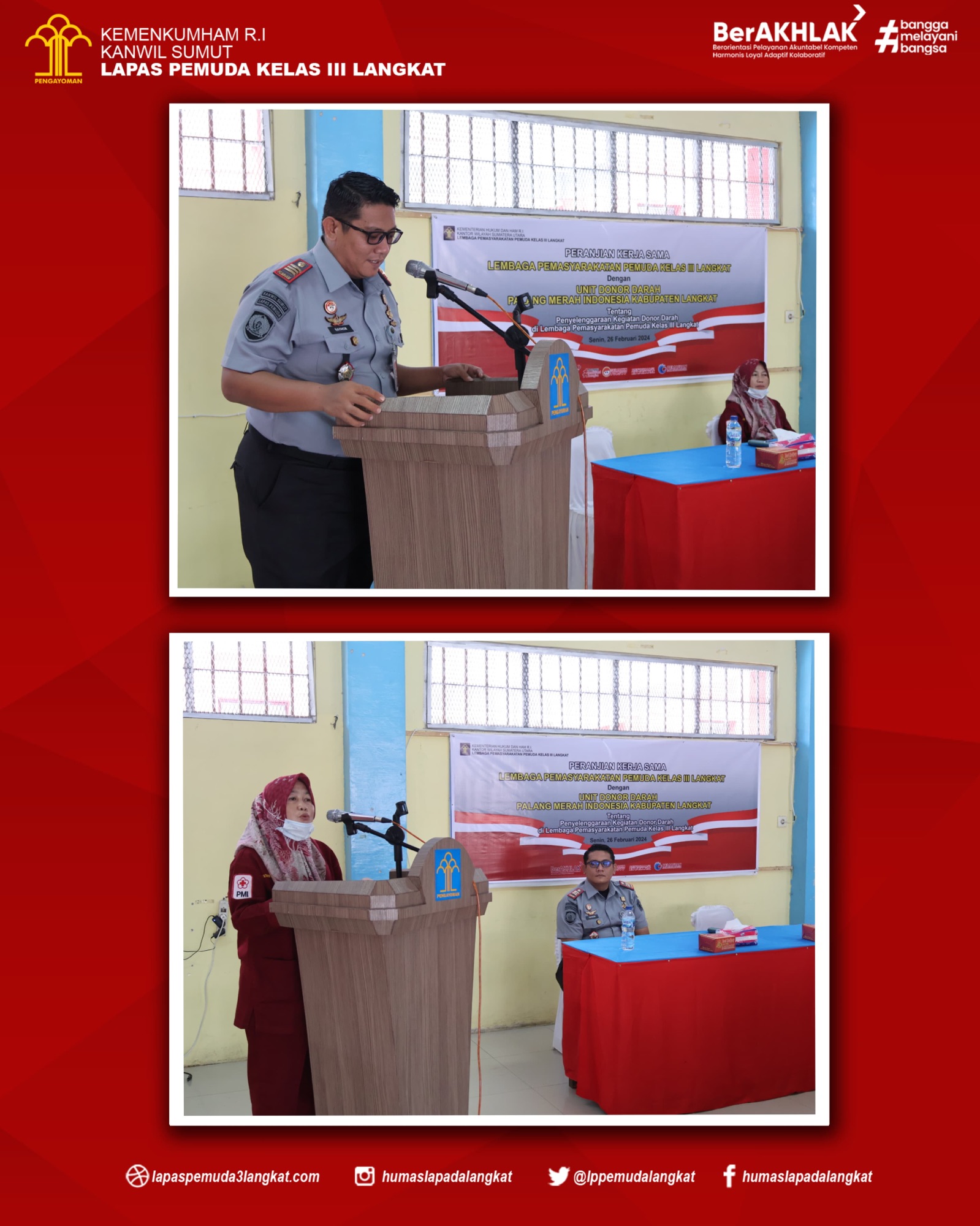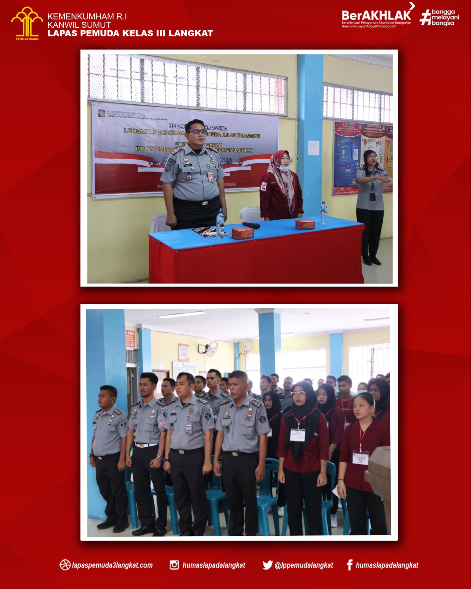 Lapas Pemuda Kelas III Langkat Kanwil Kemenkumham Sumut menggelar kerja sama dengan Palang Merah Indonesia (PMI) Kabupaten Langkat. Kerja sama itu dalam rangka penyelenggaraan donor darah bagi pegawai Lapas Pemuda Langkat secara rutin. Kerja sama itu ditandai dengan pelaksanaan penandatanganan Perjanjian Kerja Sama (PKS) yang dilakukan secara langsung oleh Bapak Kalapas Pemuda Langkat, Raymon Andika Girsang dan Kepala penanggung jawab teknis UDD Palang Merah Indonesia (PMI) Kabupaten Langkat, Fatmawati Tanjung sekaligus pelaksanaan donor darah bertempat di Gedung II Lapas Pemuda Langkat, Senin (26/02).