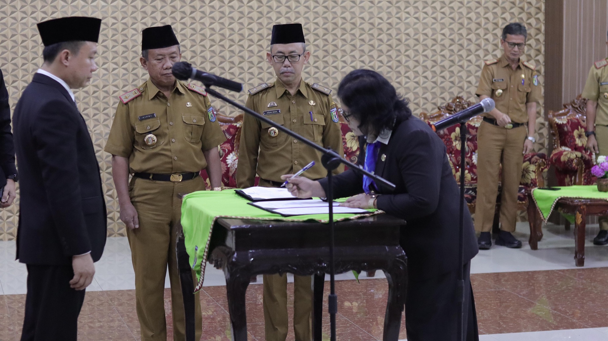 Pj.Bupati Pringsewu Dr.Marindo Kurniawan, S.T., M.M. melantik dan mengambil sumpah Sudarsih, S.E. sebagai Kepala Dinas Kependudukan dan Pencatatan Sipil Kabupaten Pringsewu.