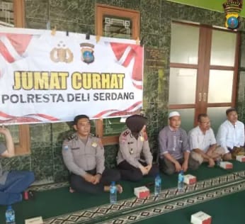 Kasat Binmas Polresta Deli Serdang Kompol Rosmeri SH memimpin kegiatan “Jumat Curhat” di Masjid Babul Ihsan Jln Purwo Kecamatan Lubuk Pakam. Jumat (17/05/24)
