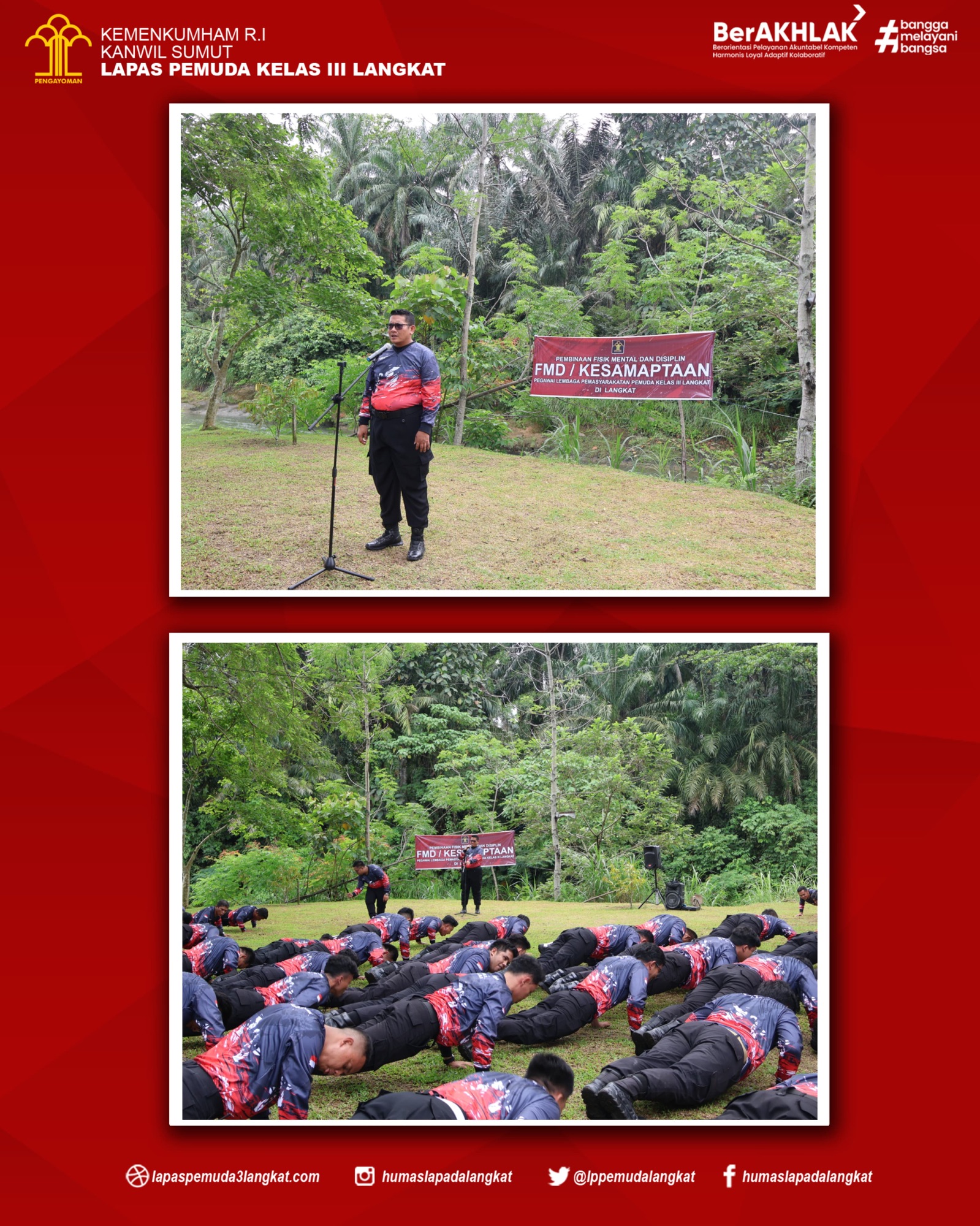 Kegiatan diawali dengan apel dan pengarahan oleh Bapak Kalapas Pemuda Langkat , Raymon Andika Girsang, Dalam arahannya menyampaikan kegiatan ini merupakan bagian dari program rutin yang diadakan untuk membangun karakter pegawai yang lebih baik serta mengasah mental setelah itu memberikan latihan fisik berupa push up kepada seluruh pegawai.