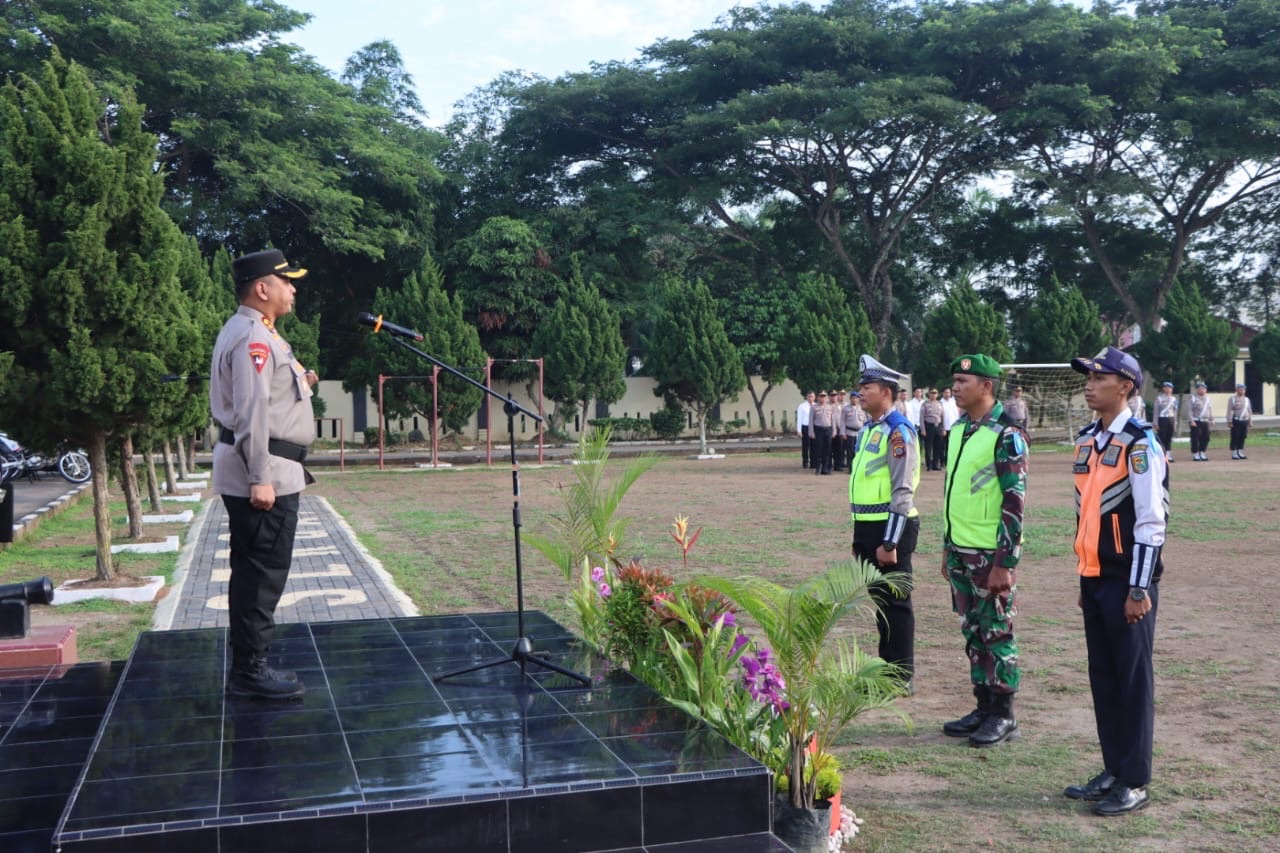 Kapolres Sergai AKBP Jhon Hery Rakutta Sitepu, SIK.,MH., memimpin pelaksanaan apel gelar pasukan dalam rangka Ops Patuh Toba 2024 di Wilayah Hukum Polres Serdang Bedagai dengan mengusung tema Tertib Berlalulintas Demi Terwujudnya Indonesia Emas, Mapolres Serdang Bedagai, Senin (15/07/2024).