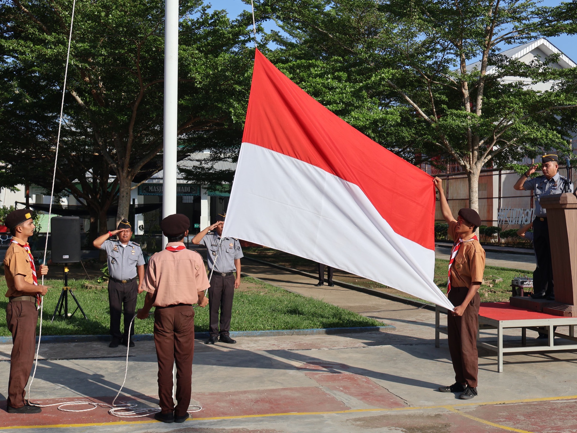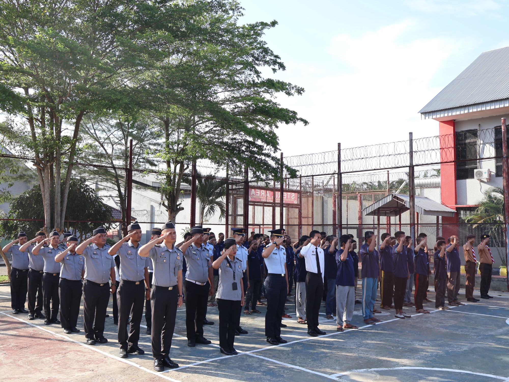 Upacara berjalan dengan tertib dan khidmat, diikuti oleh Pejabat Struktural, Jajaran Petugas, serta Warga Binaan Lapas Pemuda Langkat