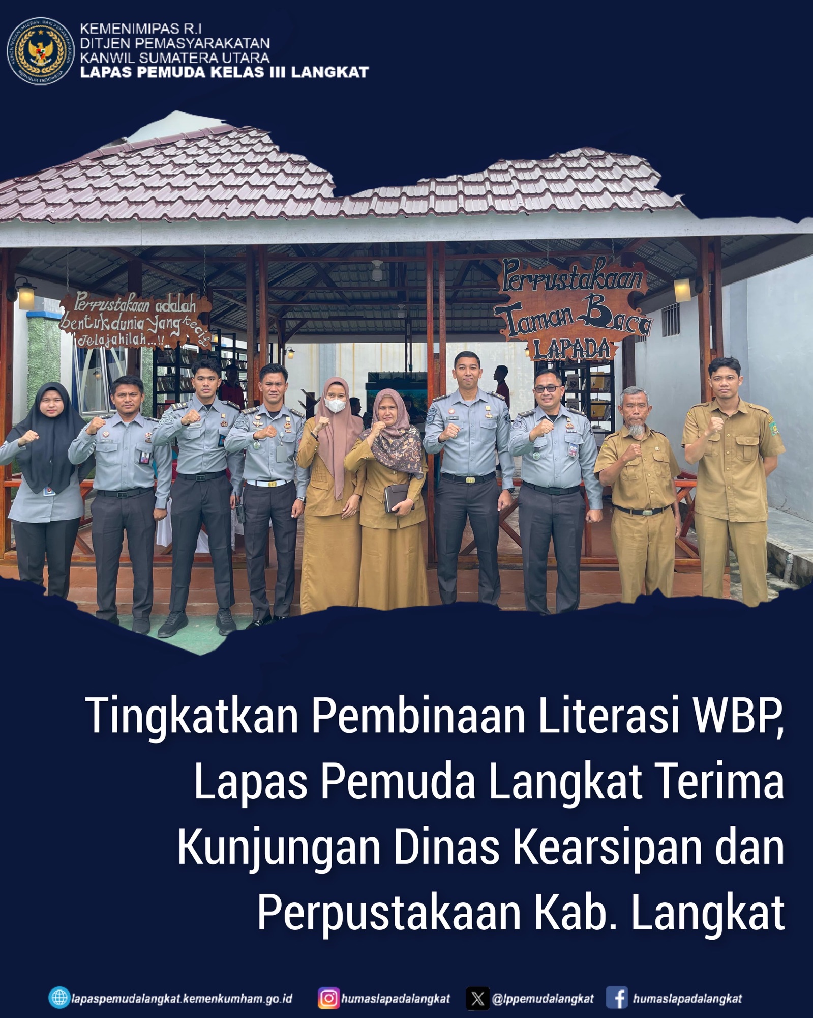Rombongan dari Kearsipan dan Perpustakaan Kab. Langkat Kepala disambut oleh Kasubsi Pembinaan, Yoslan J.H Doloksaribu, Kaur Tata Usaha, Abul Fauzi Tarigan, Kasubsi Kamtib, Hotler Krisman Pasaribu langsung diarahkan meninjau perpustakaan Lapas Pemuda Kelas III Langkat, dalam hal ini mengecek kembali keadaan buku lama maupun baru.