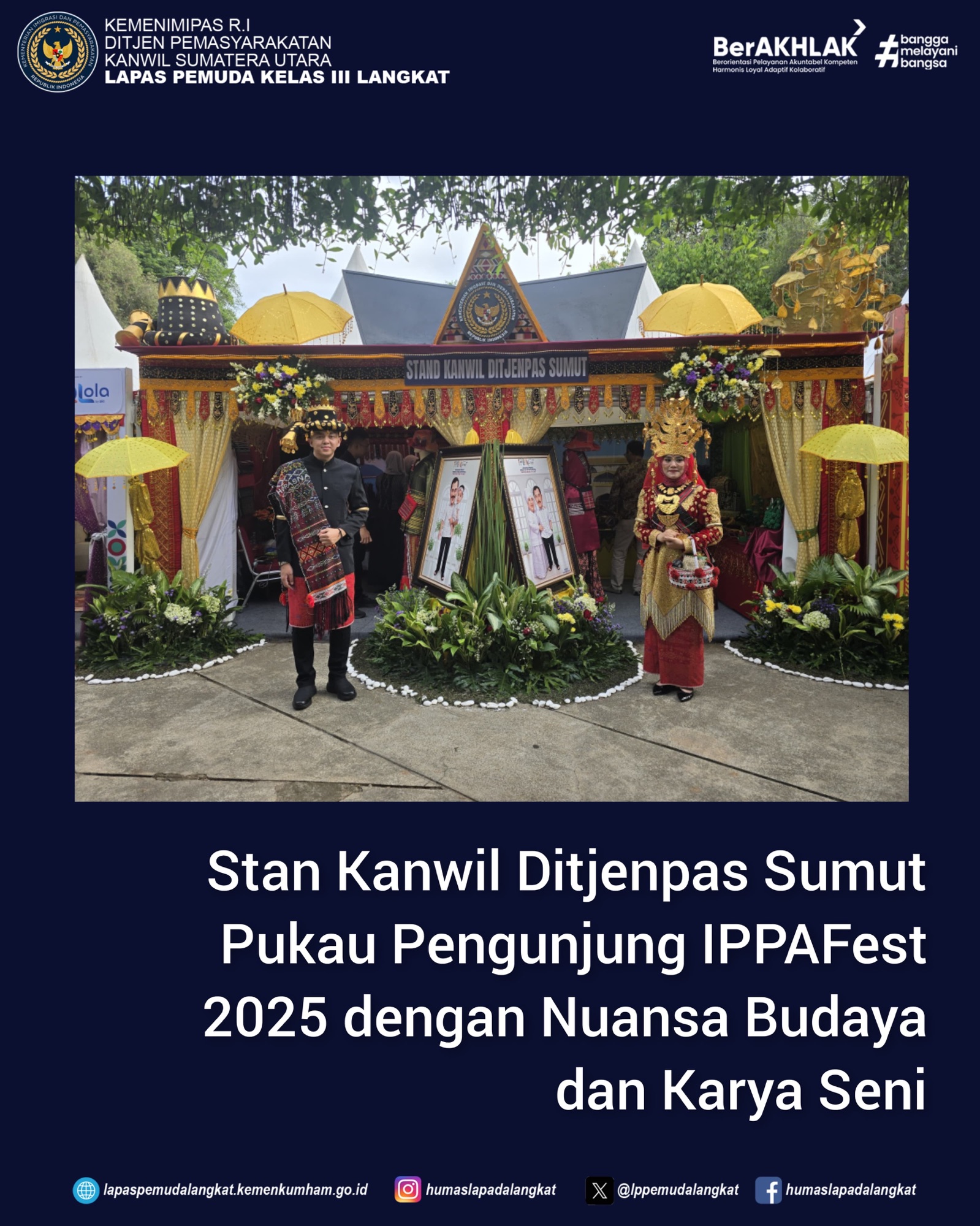 “Partisipasi kami dalam IPPAFest 2025 adalah bentuk komitmen nyata dalam mendukung pembinaan yang berkelanjutan dan berbasis budaya. Melalui stan yang mengangkat kekayaan adat Melayu, Batak Toba, Karo, Angkola, hingga Nias, kami ingin menunjukkan bahwa semangat pemasyarakatan tidak hanya soal keterampilan teknis, tetapi juga pelestarian jati diri bangsa,” ujar Yudi.