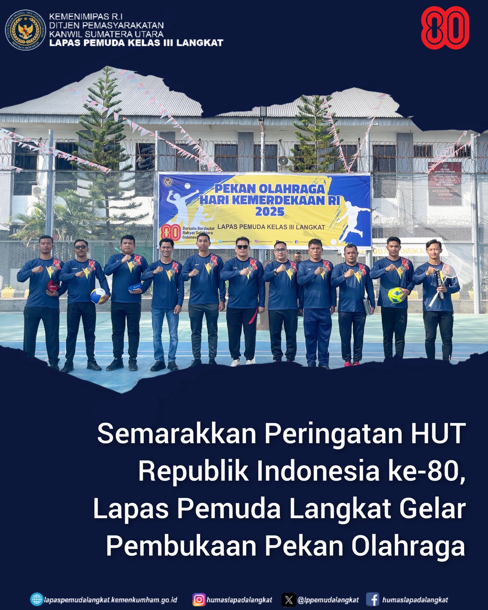 Dalam upaya memeriahkan Hari Ulang Tahun Republik Indonesia ke-80 serta mempererat tali persaudaraan antar warga binaan pemasyarakatan dan pembinaan fisik, mental dan disiplin serta semangat sportivitas, Lapas Pemuda Kelas III Langkat menggelar rangkaian kompetisi olahraga yang melibatkan seluruh Warga Binaan Pemasyarakatan dan petugas.