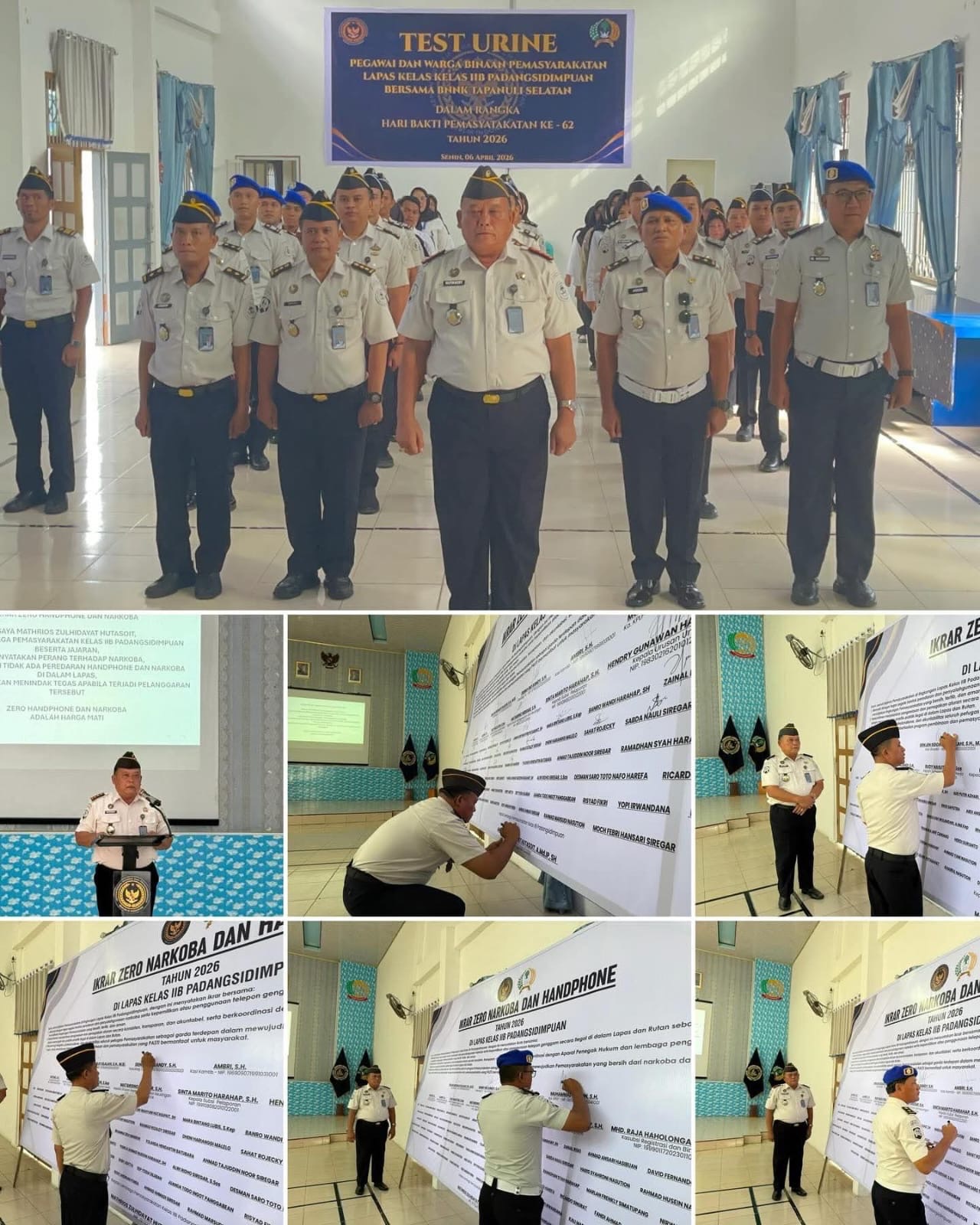 Padangsidimpuan — Kepala Lembaga Pemasyarakatan (Kalapas) Padangsidimpuan, Mathrios Zulhidayat Hutasoit memimpin langsung deklarasi komitmen bersama “Zero Handphone dan Narkoba” yang diikuti oleh seluruh jajaran petugas Lapas Padangsidimpuan. Kegiatan ini dilaksanakan sebagai bentuk keseriusan dalam menciptakan lingkungan pemasyarakatan yang bersih, aman, dan bebas dari penyalahgunaan barang terlarang.